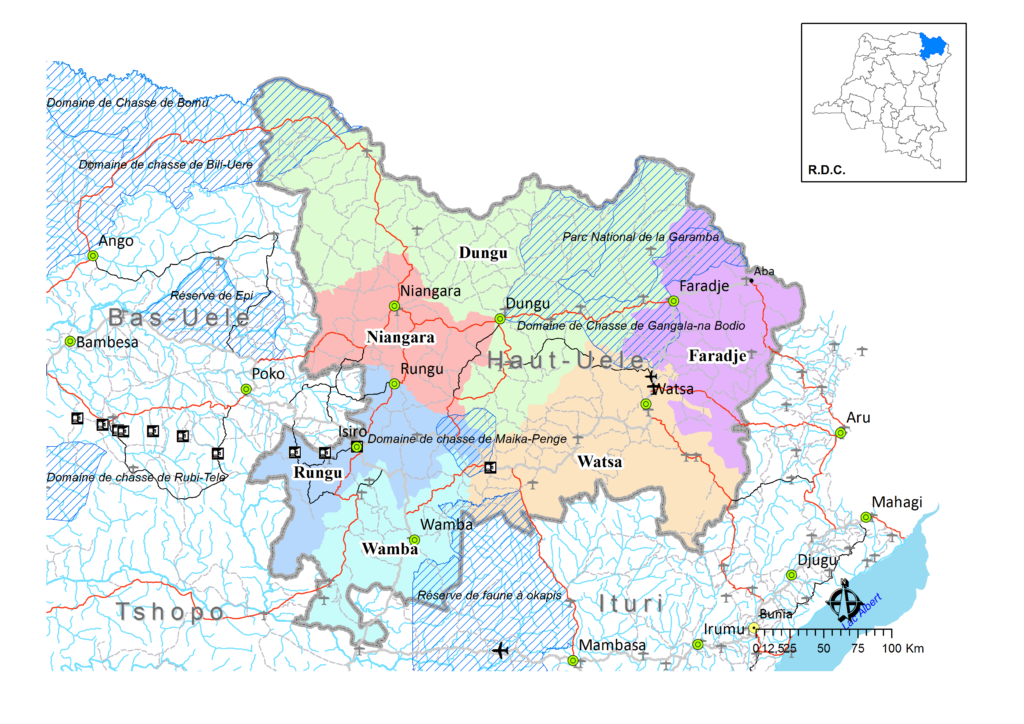 Dans cet article, je me penche brièvement sur le cas de la région du Haut-Uélé en République Démocratique du Congo (RDC) et je m’emploie à en décrire la situation aux fins de partager les expériences vécues, de donner à réfléchir et de renforcer la solidarité autour de ce défi de portée mondiale. De plus en plus, celui-ci nous fait prendre conscience que tout est lié, y compris les destins de nos communautés. Pourquoi le Haut-Uélé ? Non seulement parce que je suis originaire de cette région. Mais aussi parce que l’opinion internationale estime aujourd’hui que les ressources naturelles du bassin du Congo dont fait partie le Haut-Uélé (la rivière Uélé est en effet un affluent du fleuve Congo), doivent être sauvegardées pour le bien de toute la planète. Je vous emmène ainsi au Nord-Est de la RDC, au centre de l’Afrique, dans une province qui recouvre six territoires administratifs dont vous n’entendez sans doute que peu parler : Dungu, Faradje, Niangara, Rungu, Wamba et Watsa[1].