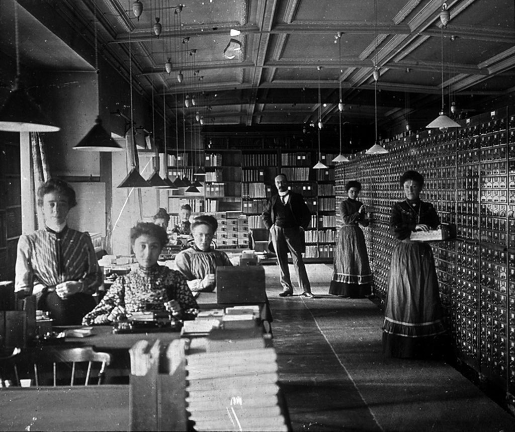 C’est en 1890 que l’histoire débute, lorsque les deux hommes se rencontrent au sein du cabinet d’avocat d’Edmond Picard et deviennent amis. Ensemble, ils mènent divers projets avec pour vocation l’universalité et la paix. Le Mundaneum en reste l’un des plus précieux héritages. Ce dernier prend vie en 1895 à Bruxelles sous le nom d’Institut International de Bibliographie. Son objectif est alors de réunir l’ensemble de la connaissance humaine, autrement dit, de référencer tous les ouvrages publiés depuis l’apparition de l’imprimerie. Près de dix-huit millions de fiches bibliographiques sont rédigées suivant la Classification décimale universelle mise au point par Paul Otlet et Henri La Fontaine (encore en usage dans la plupart des bibliothèques) et organisées au sein du Répertoire Bibliographique Universel. Ce premier moteur de recherche sur papier fait des fondateurs du Mundaneum des pionniers du web. Il est d’ailleurs inscrit au registre « Mémoire du Monde » de l’Unesco depuis 2013.