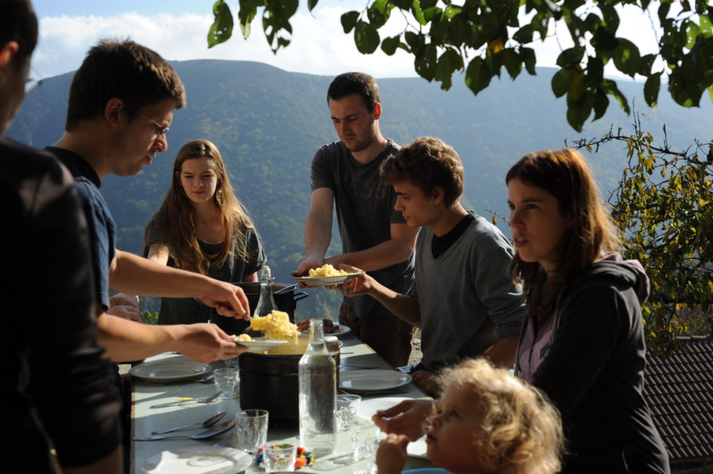 La Viale est vraiment un lieu de Grâces, dont nous ne cessons de nous émerveiller ! C’est un lieu où se rencontrent des gens très différents : depuis le catho français classique jusqu’au jeune « Workawayer » globe-trotter plutôt branché méditation bouddhiste, en passant par l’anarchiste, l’agnostique ou l’athée. L’écolo-gauchiste y côtoie l’énarque. J’y ai vu un ministre allemand construire un mur en pierre sèche avec un gars qui avait fait de la prison. Ma joie de voir des gens différents se rencontrer est ici comblée ! Tout ce petit monde se retrouve à la prière, fourbu, content de se poser dans notre belle « bergerie-chapelle » et les échanges ensuite autour de la table ressemblent assez peu à ce que l’on vit dans une hôtellerie monastique.