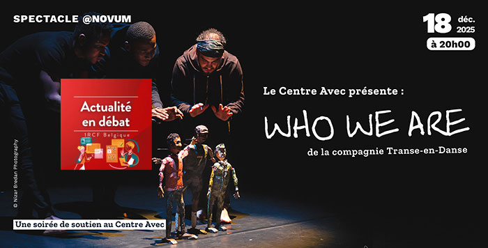 À l’occasion de la Journée internationale des migrants, RCF a interrogé Christophe Renders, chargé pédagogique, d’analyse et d’animation au Centre Avec. Il a présenté « WHO WE ARE ». Une forme scénique plurielle mêlant danse, théâtre, chant et marionnettes pour dire autrement la migration et ceux qui la vivent. Représentation unique, dans le cadre d’une soirée de soutien au Centre Avec, le jeudi 18 décembre 2025 à 20h, au Novum, à Etterbeek.