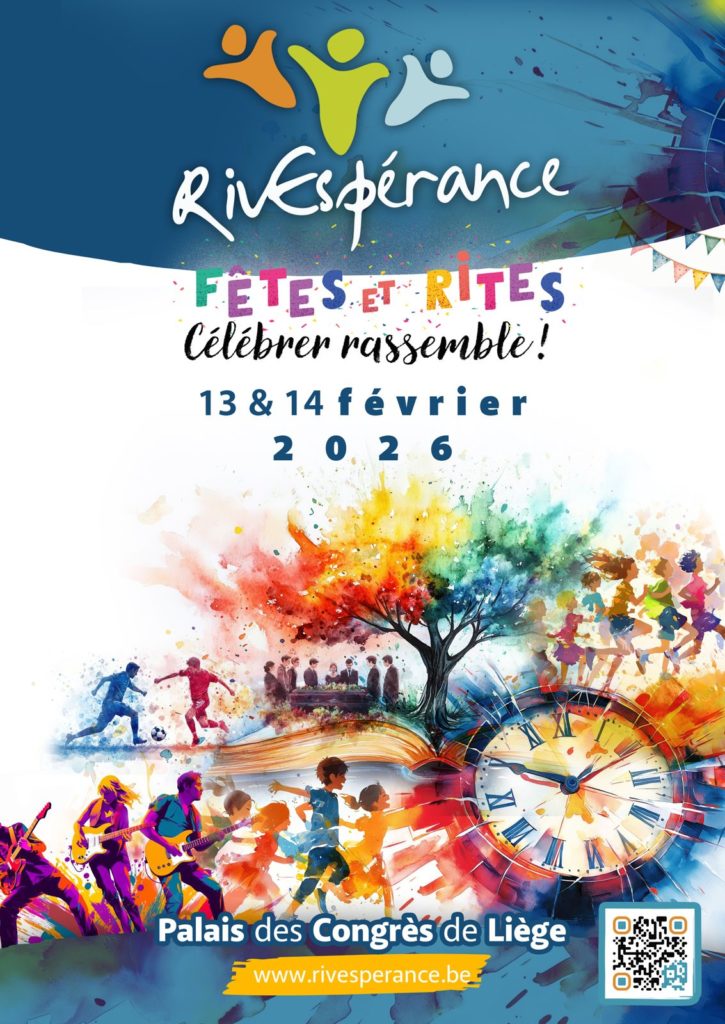 Venez rencontrer, écouter, partager, vibrer et célébrer la vie lors de cette 7e édition du Forum RivEspérance au Palais des Congrès de Liège sur le thème des fêtes et rites. Avec la participation de Eric-Emmanuel Schmitt, Françoise Lempereur, Geneviève Frère, Gabriel Ringlet, Mireille Bavré et bien d’autres… Vendredi soir 13 février et samedi 14 février du matin au soir, RivEspérance propose un programme très complet avec conférences, rencontres, soirée artistique, temps de célébration spirituelle, ateliers, village associatif… mais également des programmes spécifiques pour enfants et jeunes.